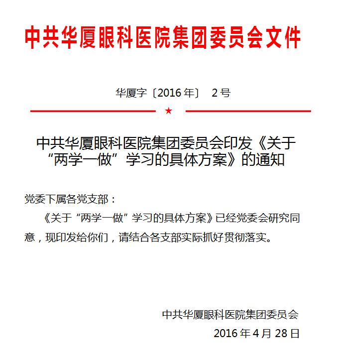 【文章導(dǎo)讀】中共華廈眼科醫(yī)院集團委員會關(guān)于兩學(xué)一做學(xué)習(xí)的具體方案 為推進全面從嚴(yán)治黨,根據(jù)黨中央《關(guān)于在全體黨員中開展學(xué)黨章黨規(guī)、學(xué)系列講話,做合格黨員學(xué)習(xí)教育方案》和思明區(qū)組