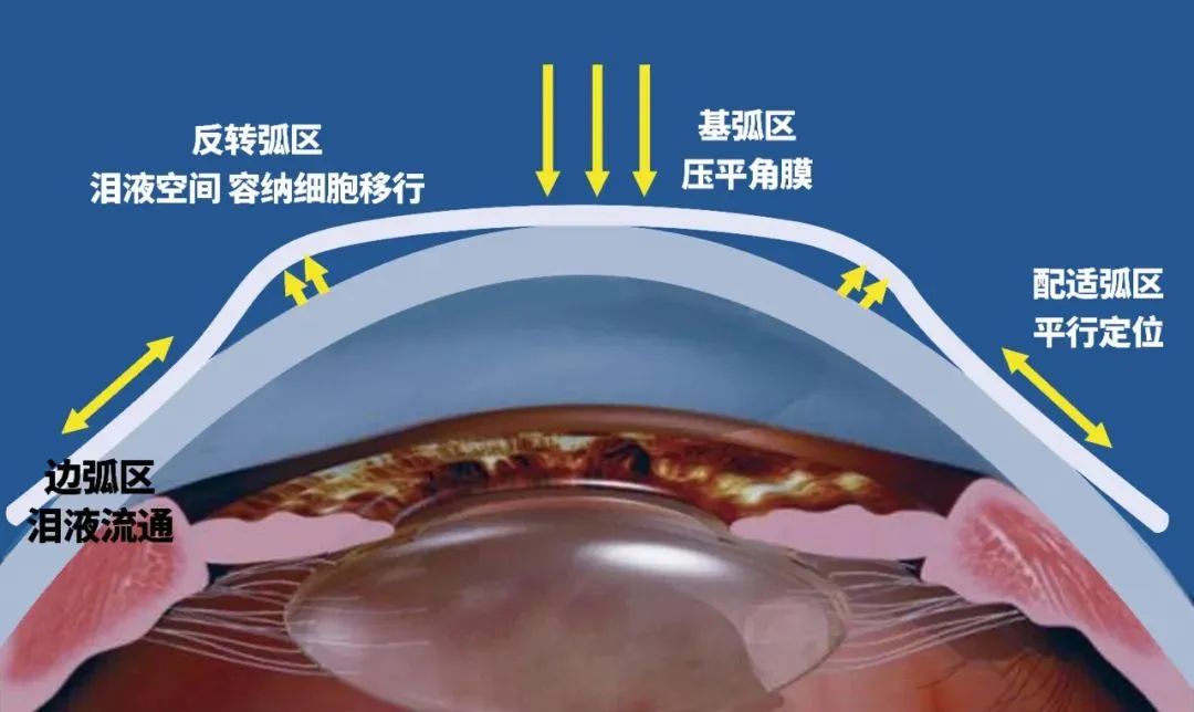 2、OK鏡采用了反幾何設(shè)計,根據(jù)角膜形態(tài)做定制。