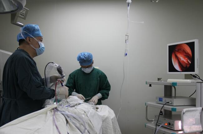 周太平主任在實(shí)施淚囊鼻腔吻合術(shù)(經(jīng)鼻內(nèi)鏡)