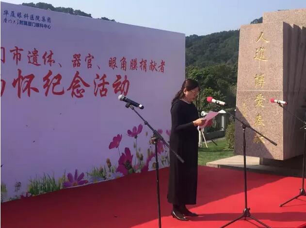 廈門(mén)大學(xué)附屬?gòu)B門(mén)眼科中心是福建省眼角膜捐獻(xiàn)指定的接收機(jī)構(gòu)。廈門(mén)大學(xué)附屬?gòu)B門(mén)眼科中心黨委書(shū)記陳逸恬在緬懷儀式上致辭,表達(dá)對(duì)生命的理性思考,對(duì)捐獻(xiàn)者偉大人格的崇敬之情。同時(shí)希望“人道、博愛(ài)、奉獻(xiàn)”的紅十字精神越來(lái)越被廣大愛(ài)心市民所接受和推崇,也希望更多的角膜盲患者能重獲光明,開(kāi)啟新的生活。