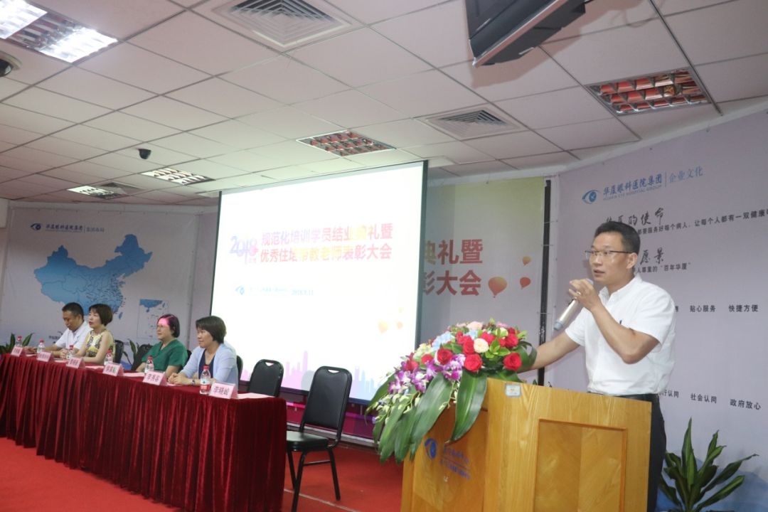 眼科醫(yī)院集團(tuán)副總裁、廈門眼科中心執(zhí)行院長李曉峰、廈門眼科中心業(yè)務(wù)院長侯家敏、廈門眼科中心副總經(jīng)理姚鄭玲玲、廈門眼科中心特檢部主任李明翰博士,廈門眼科中心人力資源總監(jiān)李秀容以及優(yōu)秀帶教老師代表等出席典禮。