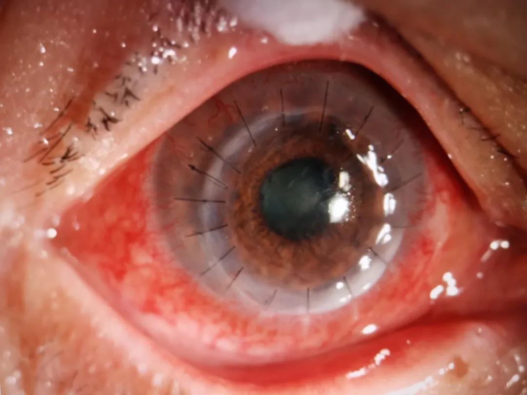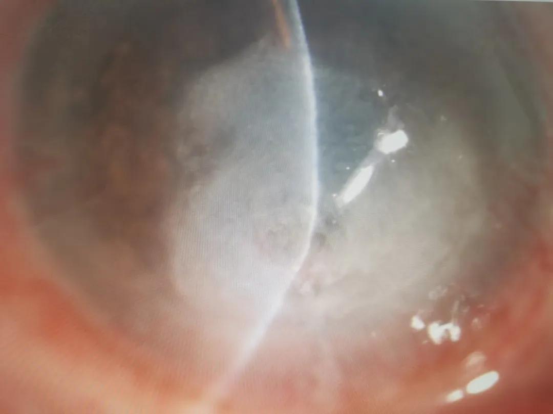 廈門大學附屬廈門眼科中心眼表及角膜病學科帶頭人吳護平教授接診了老楊。經(jīng)過吳教授詳細檢查與診斷,確診老楊右眼“角膜潰瘍”,建議老楊住院治療??煽紤]到時值春節(jié),老楊還是堅持先保守治療,等春節(jié)過后再入院手術(shù)。