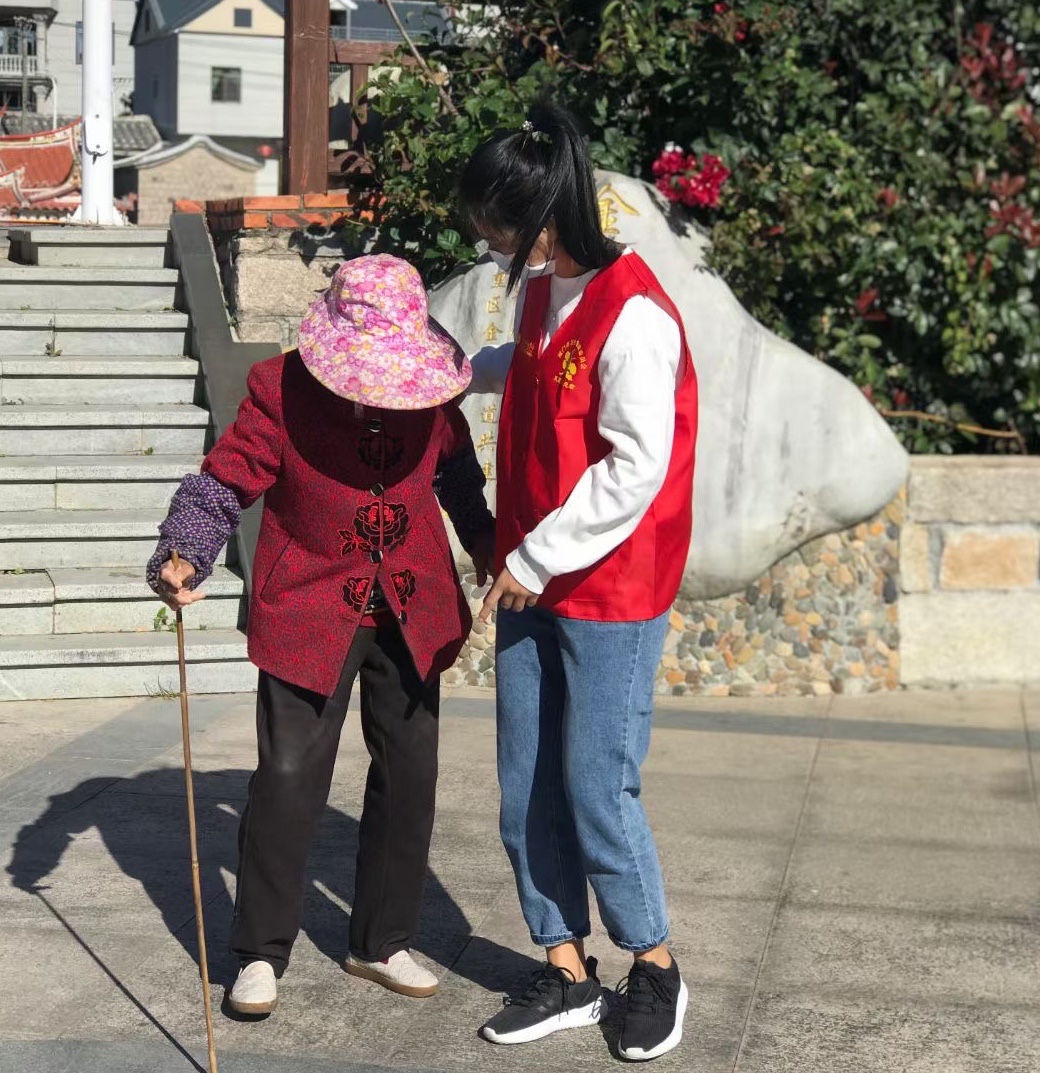2天時間,6個高山村落,143位老人,200公里山路,鮮艷的鳳凰花“光明先鋒”志愿服務(wù)隊旗幟在高山上高高飄揚。