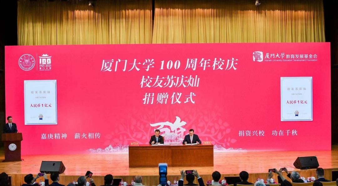 眼科醫(yī)院集團(tuán)蘇慶燦董事長向廈門大學(xué)捐贈1億元。