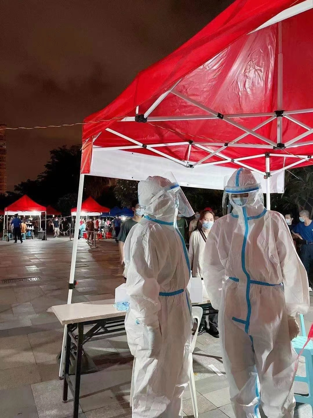 多名醫(yī)護人員緊急趕赴一線,參與核酸檢測工作