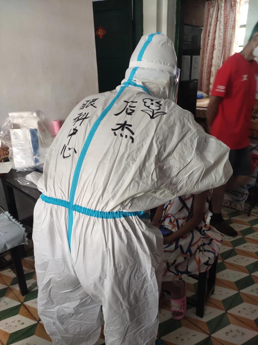 十多分鐘的路程,當(dāng)走到住戶家中時(shí),穿著防護(hù)服的后杰已全身濕透。雖然平常酷愛健身,但這段路程對他來說也略顯吃力。