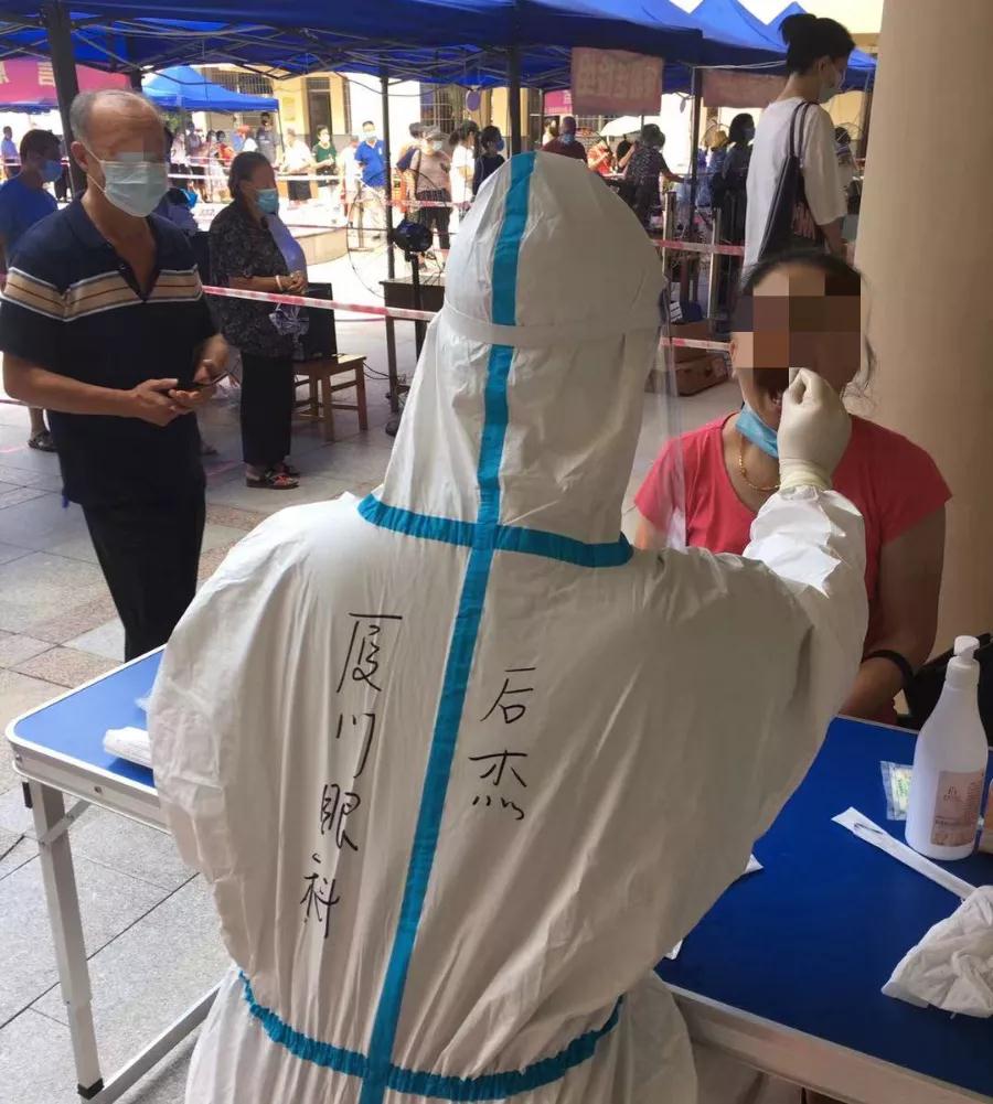 廈門市第三輪全員核酸檢測啟動(dòng)。依照部署,廈門眼科中心醫(yī)護(hù)人員奔赴各社區(qū)核酸檢測點(diǎn)支援。截止發(fā)稿,廈門眼科中心已派出403名醫(yī)護(hù)人員前往25個(gè)社區(qū),助力廈門市打贏疫情防控這場硬仗。作為支援前線的一員,22歲的男護(hù)士——后杰,主動(dòng)報(bào)名,“隨叫隨到”。