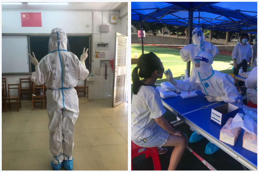 我是一個(gè)99年的“新”護(hù)士,這是我這個(gè)月第3次參加核酸采集工作。我曾因天氣炎熱,在進(jìn)行核酸采樣工作時(shí),突感頭暈不適、出現(xiàn)嘔吐等癥狀。可是各個(gè)崗位人手都緊張,我害怕同事們忙不過(guò)來(lái),就想著趕快休息一下,感覺(jué)可以了就繼續(xù)工作。也曾因人手不夠,在剛結(jié)束完核酸采集工作不久后,又被召集回來(lái)繼續(xù)工作到晚上。既沐浴過(guò)初升的朝陽(yáng),也欣賞過(guò)滿(mǎn)天的繁星。