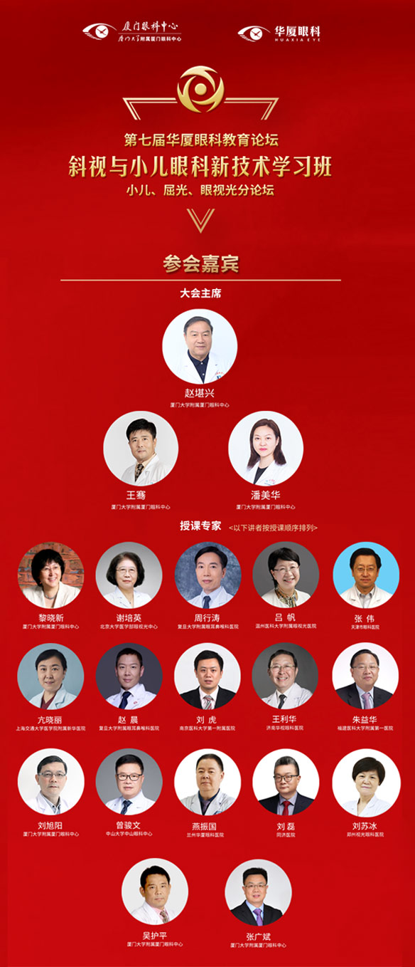 巔峰聚首,百家爭(zhēng)鳴!10月18日-21日,由廈門大學(xué)附屬?gòu)B門眼科中心主辦的“斜視與小兒眼科新技術(shù)學(xué)習(xí)班暨第七屆華廈眼科教育論壇小兒、屈光、眼視光分論壇”云端際會(huì),精彩盛放。本屆論壇由47名大咖學(xué)者領(lǐng)銜主講,匯集國(guó)內(nèi)眼科領(lǐng)域金字塔尖專家,為我們帶來(lái)智慧激蕩的高峰論劍。大會(huì)主席:國(guó)際眼科科學(xué)院院士、華廈