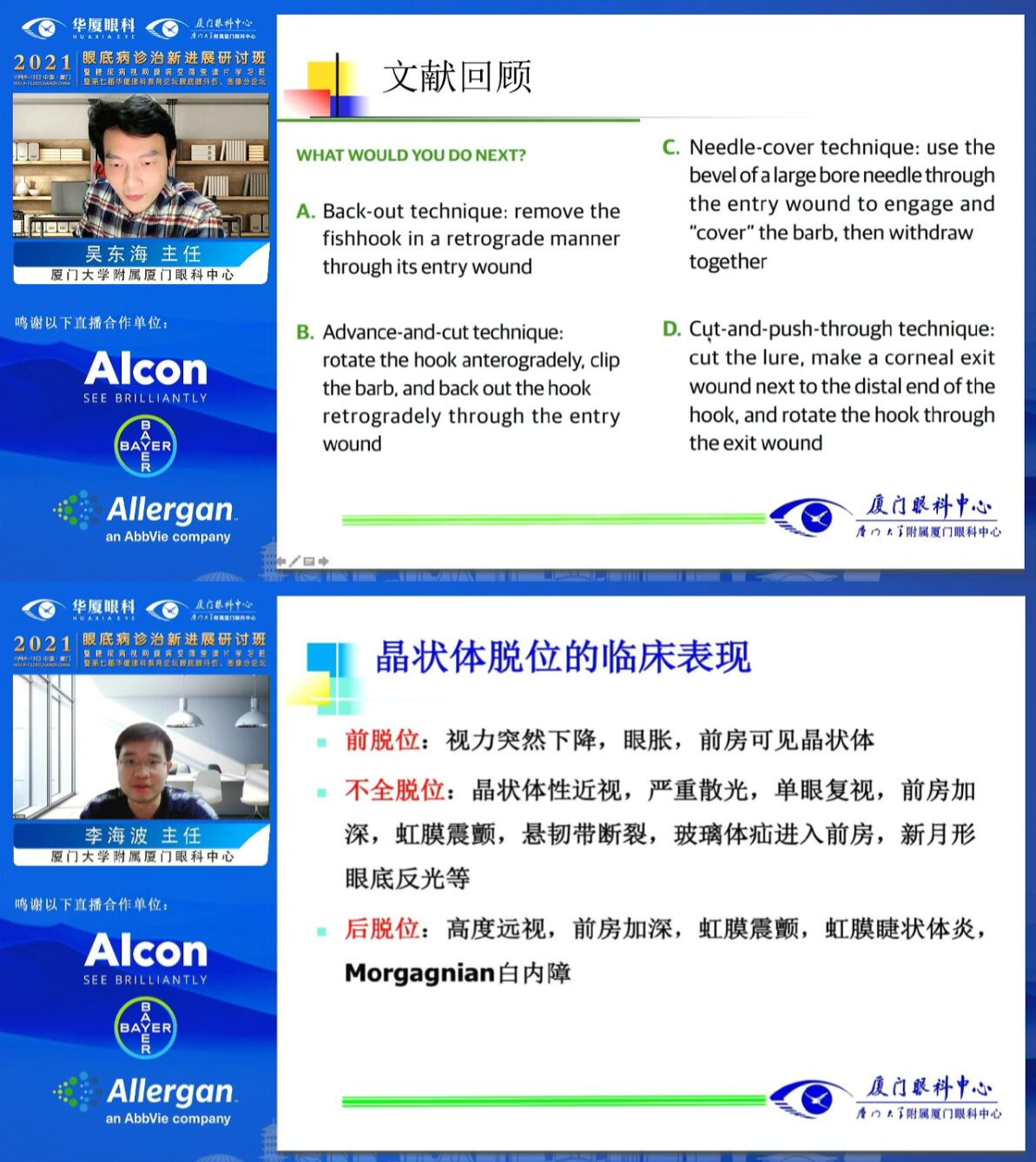 黎曉新院長圍繞高度近視黃斑劈裂、葡萄膜炎、視網(wǎng)膜靜脈阻塞、兒童遺傳性視網(wǎng)膜病、DR適應癥、孔源性視網(wǎng)膜脫離、鞏膜扣帶術(shù)、眼內(nèi)液檢測、眼內(nèi)激素治療DME等主題進行全方位深層次的講解,對有關(guān)熱點問題積極探討,交流實踐經(jīng)驗,分享成果,助力中國防盲治盲事業(yè)發(fā)展。