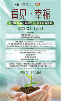 眼睛是心靈之窗,眼健康是國民健康的重要組成部分,也是反映人民群眾健康和幸福指標(biāo)的一面鏡子。為深化落實“愛心廈門”行動及內(nèi)涵,提升人民群眾的獲得感、幸福感、安全感,滿足普遍、多樣的眼健康需求,2022年3月21日至12月31日,廈門眼科中心暖心啟動2022年“看見幸福”眼健康愛心公益項目,聚焦弱勢群體及重點眼病的困難救治,凡符合條件的患者均可申請專項愛心公益補助。