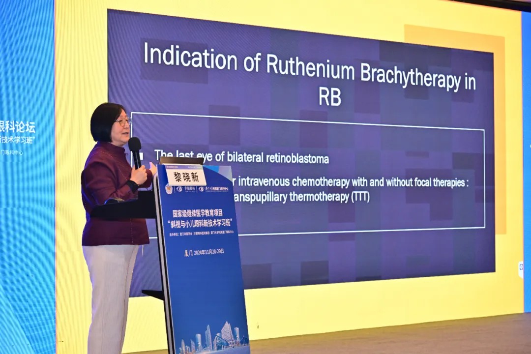 ▲ 國際眼科科學(xué)院院士、廈門眼科中心總院長黎曉新教授分享《雙側(cè)RB的第二只眼治療》