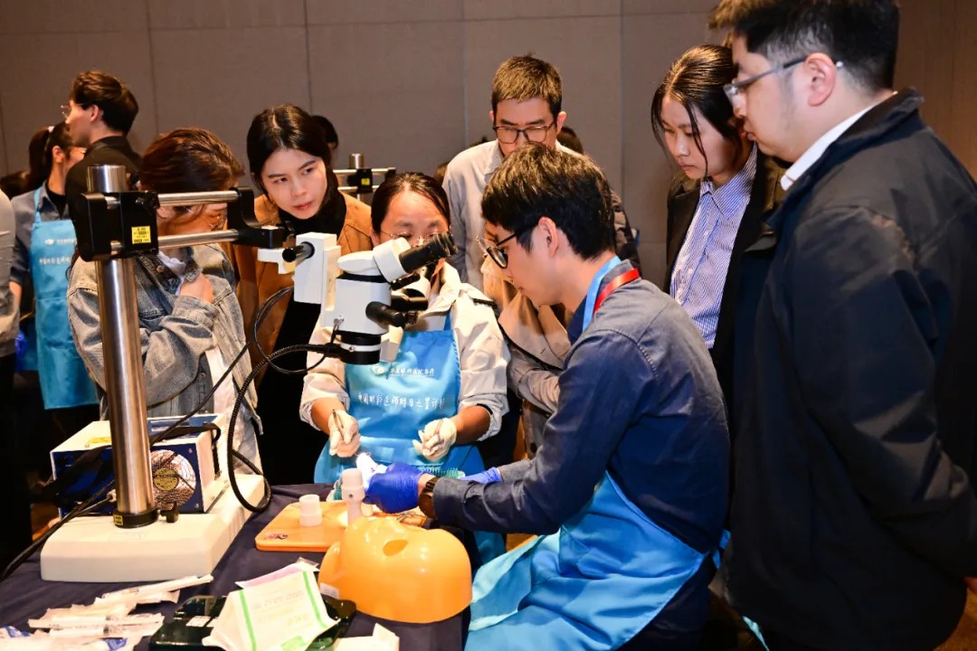 除學(xué)術(shù)環(huán)節(jié)外,本次論壇特別開設(shè)了斜視手術(shù)Wetlab實(shí)操培訓(xùn)專場及手術(shù)錄像展播。廈門眼科中心斜視與小兒眼科的主任醫(yī)師謝仁藝,副主任醫(yī)師楊梅、何歡、王海燕為學(xué)員們一對一講解了斜視手術(shù)的操作要點(diǎn)、技巧,手把手指導(dǎo)學(xué)員在動物眼上實(shí)操,大大提升了學(xué)員們的斜視手術(shù)技能。
