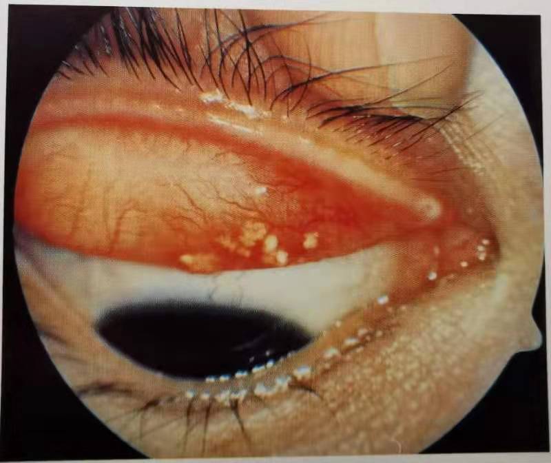 眼結(jié)石,其實(shí)是結(jié)膜發(fā)生慢性炎癥時(shí),結(jié)膜脫落的上皮細(xì)胞、黏液成分和脂肪等成分長期堆積,從而形成的一顆顆類似于結(jié)石的東西。眼結(jié)石在外觀上是質(zhì)地堅(jiān)硬的黃白色小點(diǎn),我們可以在瞼結(jié)膜上看到這些小點(diǎn)狀的突起,形狀就像碎米粒,有的眼結(jié)石呈散點(diǎn)狀,有的可能比較密集,集結(jié)成群。