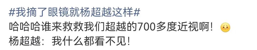 繼楊超越自曝700度高度近視引發(fā)熱議后,近日她在某綜藝中摘了眼鏡穿針的行為再次沖上熱搜——#我摘了眼鏡就楊超越這樣#。